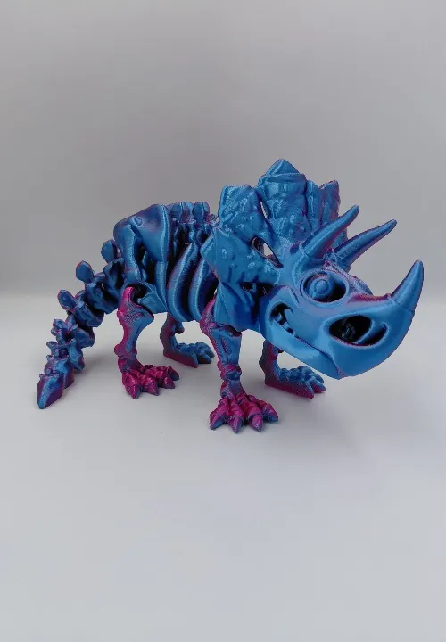 Meet the Flexi Triceratops – a delightfully silly dino who’s as flexible as he is fun! 3D printed in vibrant, high-quality PLA, this lovable prehistoric pal features full articulation, allowing his legs, tail, and head to wiggle, wobble, and strike the goofiest of poses.